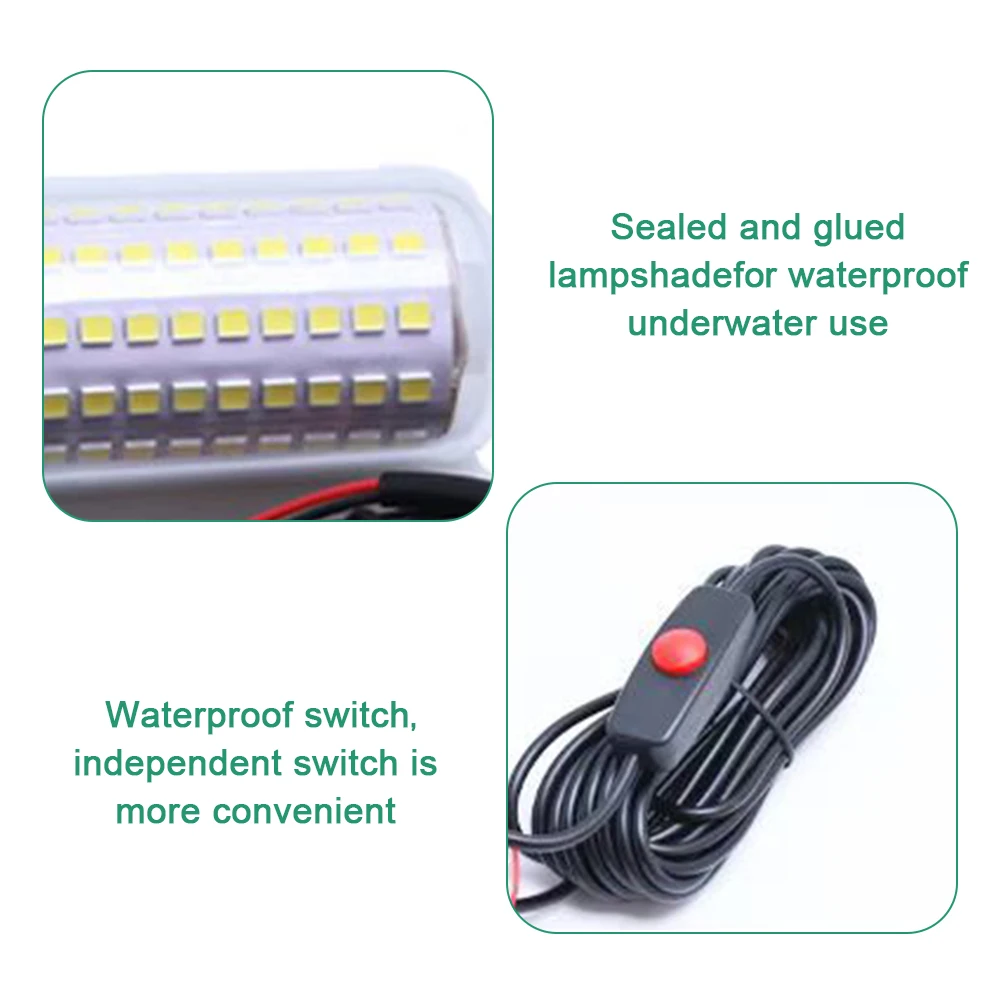 12V LED Fishing Trap Light IP68 Waterproof Fish Gathering Lamp Corrosion Resist for Night Fishing 100W Light Accessories