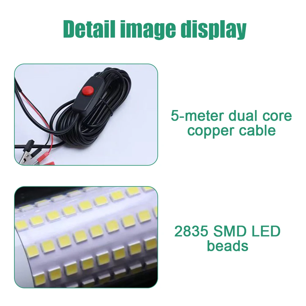 12V LED High-Power Fishing Light IP68 Waterproof Fish Gathering Lamp Corrosion Resist for Night Fishing 100W Light Accessories