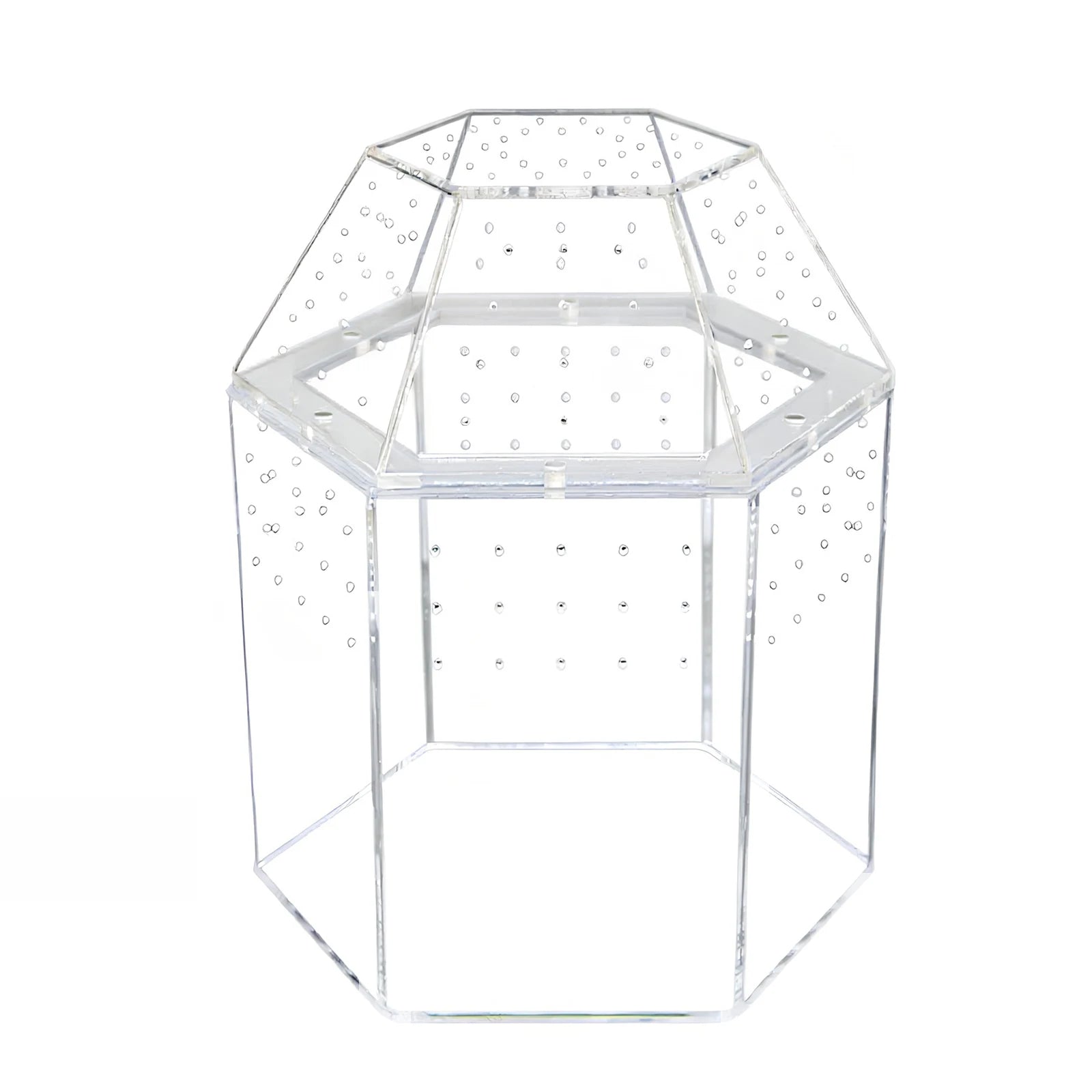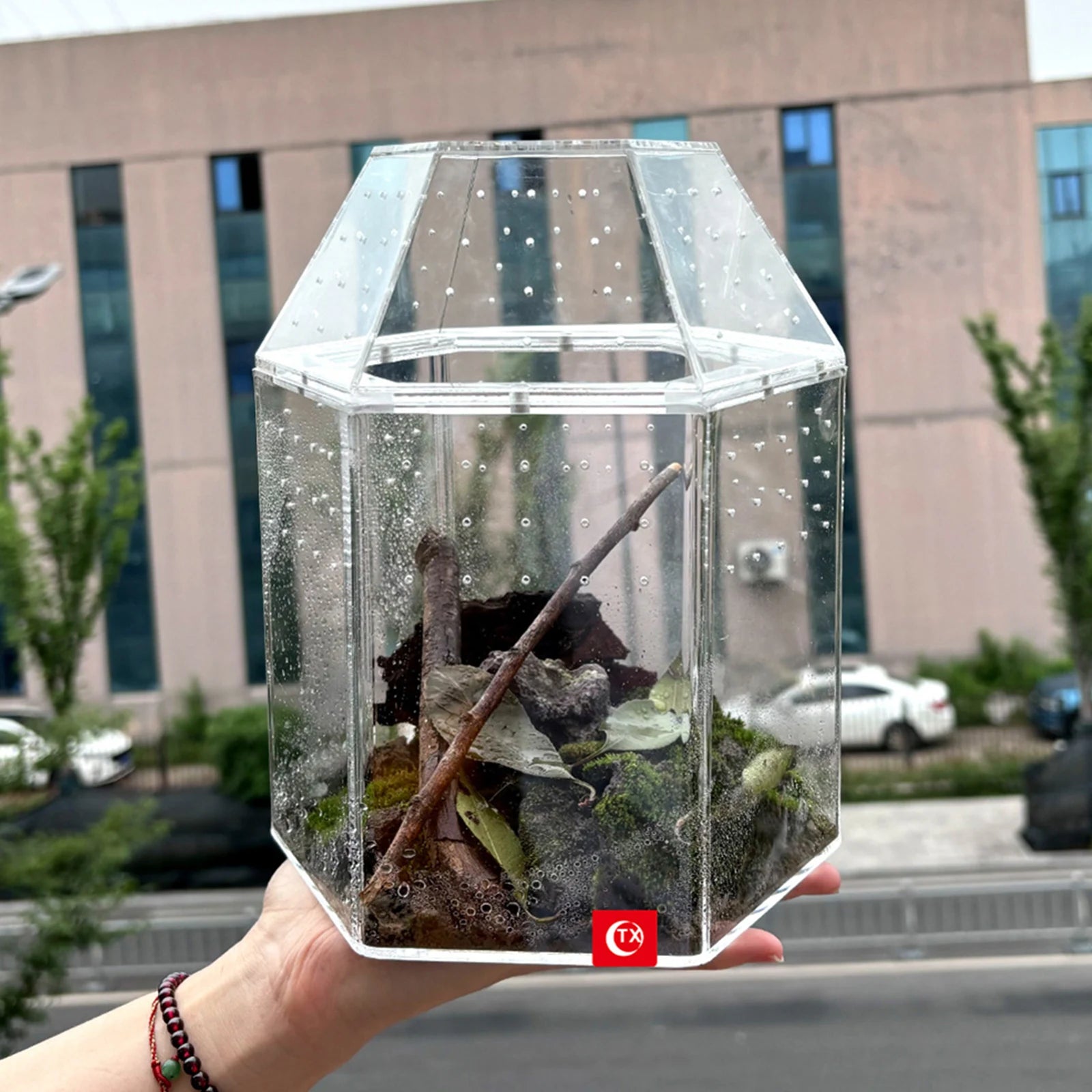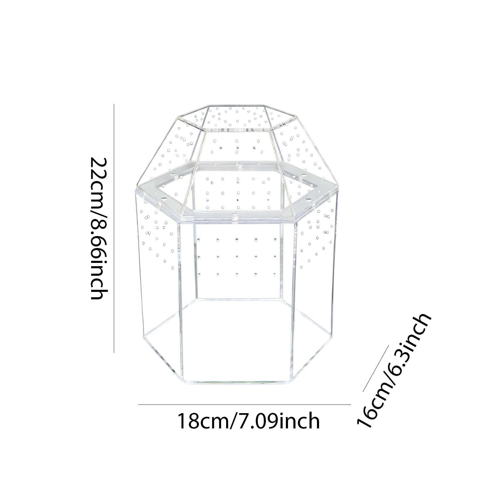 Jumping Spider Enclosure Full Transparency Reptile Breeding Box All-Side Ventilation Mini Tarantula Enclosure Ventilated for Spiders Tarantulas Snail Lizard Reptiles Features: 1.360° Transparent Design: The jumping spider enclosure is crafted from high-quality acrylic, measuring 7.09*6.3*8.66 inches for a clear, tough, and abrasion-resistant build. Enjoy visibility to easily observe your pet's behavior, ideal for reptiles who love hiding in soil. 2.Effective Ventilation: This terrarium habitat features multiple side vents, ensuring your creatures Taking advantage of fresh air and constant airflow. The thoughtful vent design creates a healthy environment and reduces the risk of moisture buildup within the enclosure. 3.Versatile Application: Not only ideal as a tortoise enclosure, this transparent box effortlessly accommodates jumping spiders, snails, bearded dragons, tree frogs, and snakes. Create a dynamic space that suits the needs of various reptiles and amphibians. 4.Excellent for Bug Terrariums: The bug terrarium is easy to maintain and designed to display vibrant moss landscapes or support a diverse range of crawling and climbing pets. Its transparency lets you observe every moment and interact with your animals comfortably. 5.Secure Breeding Environment: Use this reptile breeding box to provide a safe and easy-to-clean home for your pets. The sturdy acrylic structure ensures durability while offering an ideal setup for successful reptile and small animal breeding.