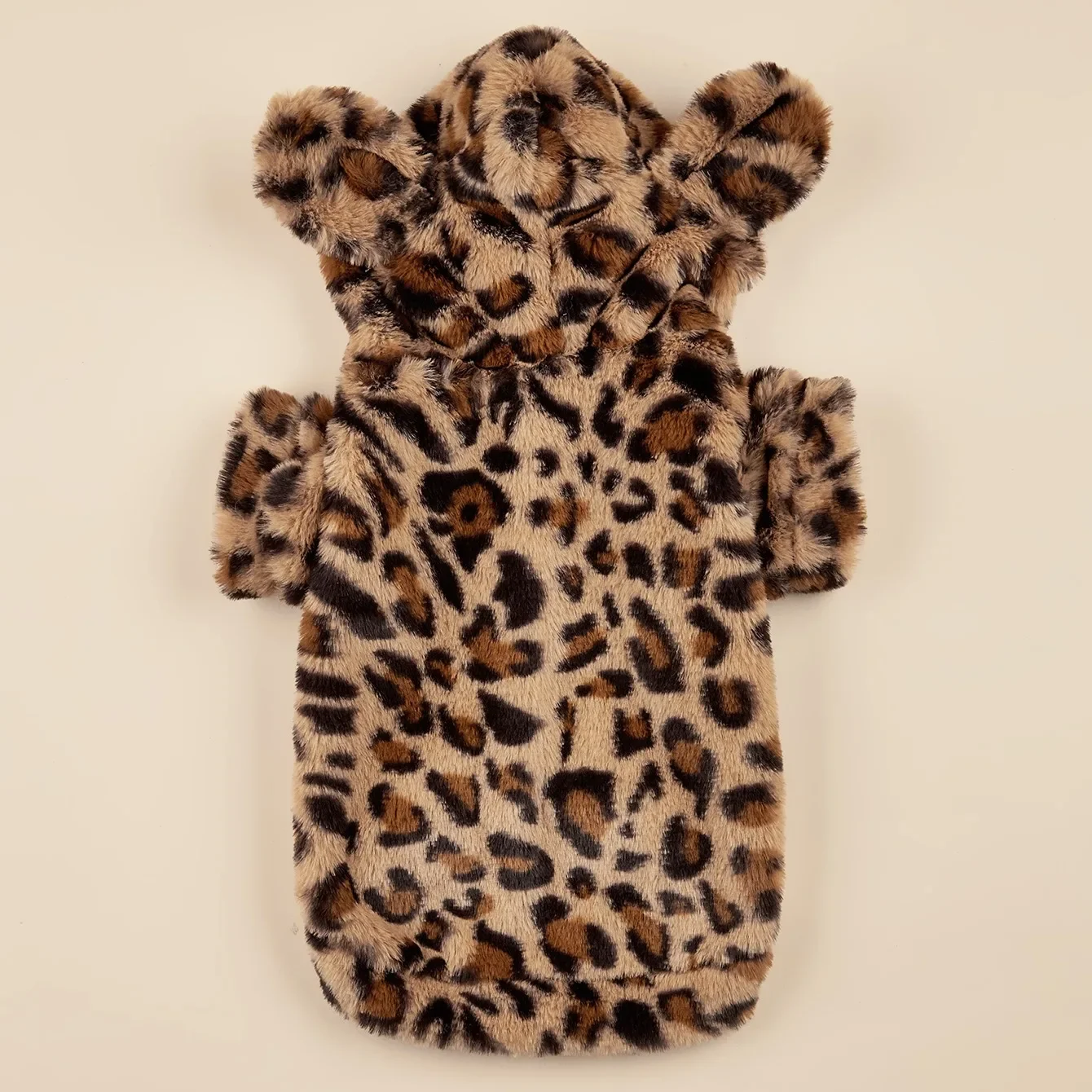 Pet Hoodie For Small & Medium Dogs, Leopard Dog Hoodie With Ears, Plush Dog Clothes, Pet Apparel