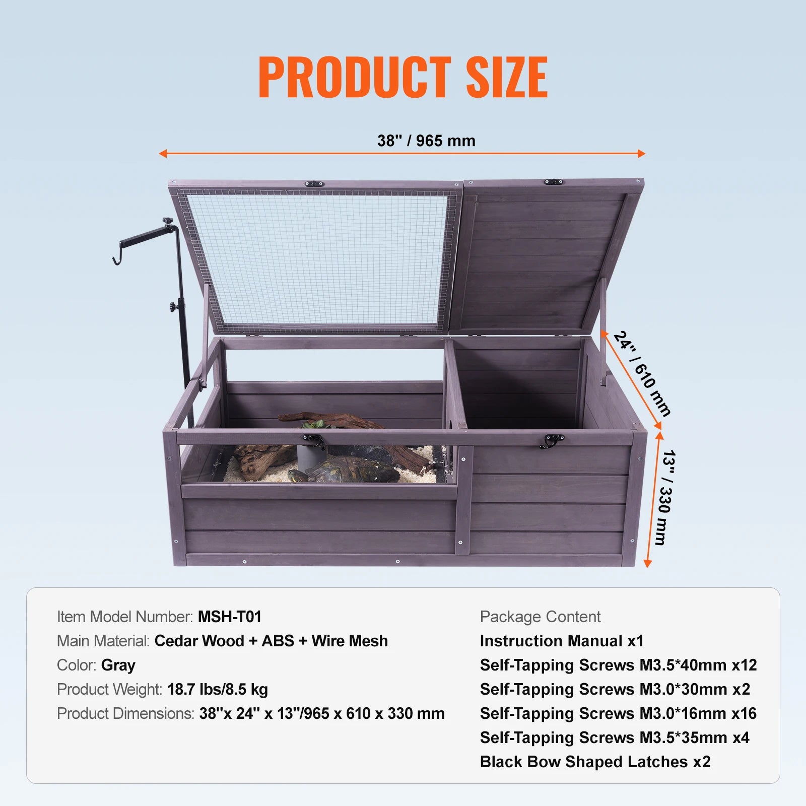 Durable 100% Cedar Construction: Made from premium cedar wood, this tortoise habitat offers a strong and durable structure with a tight grain that resists deformation. The water-based paint coating makes the enclosure waterproof, ensuring a safe, long-lasting, and comfortable environment for your pet.
