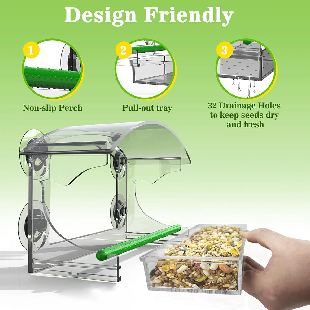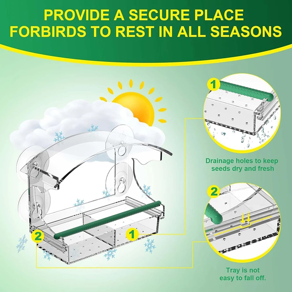 Window Bird Feeder Window Bird Bait Box with 4 Suction Cups Acrylic Window Birdhouse with Rod Wild Bird Feeder for Outdoors